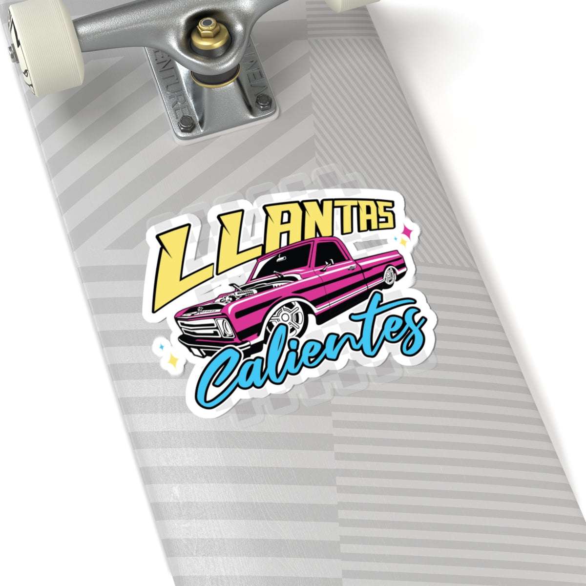 The Llantas Calientes Stickers bring bold automotive style to your laptop, water bottle, toolbox, or ride. Featuring the vibrant retro truck design with colorful lettering, these stickers are perfect for car enthusiasts, students, and anyone who wants to add a pop of culture to their gear.